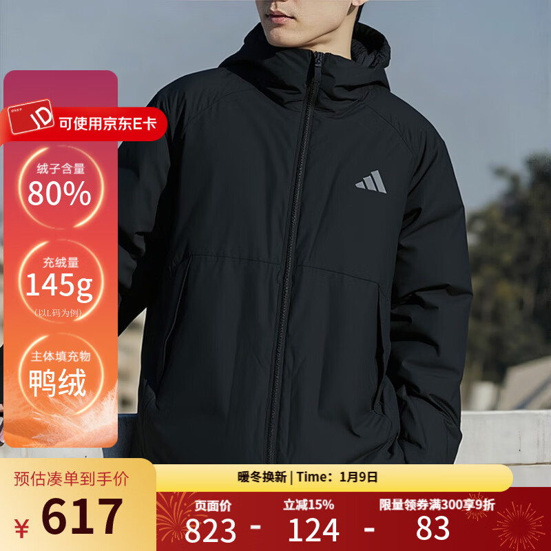 阿迪达斯(adidas)羽绒服男装 2025冬季新款600蓬防寒保暖运动休闲短款连帽加厚夹克 KQ5505 L