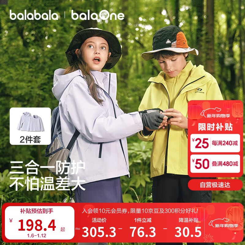 巴拉巴拉童装儿童外套男童2025春秋装女童摇粒绒两件套拜年服208125105208