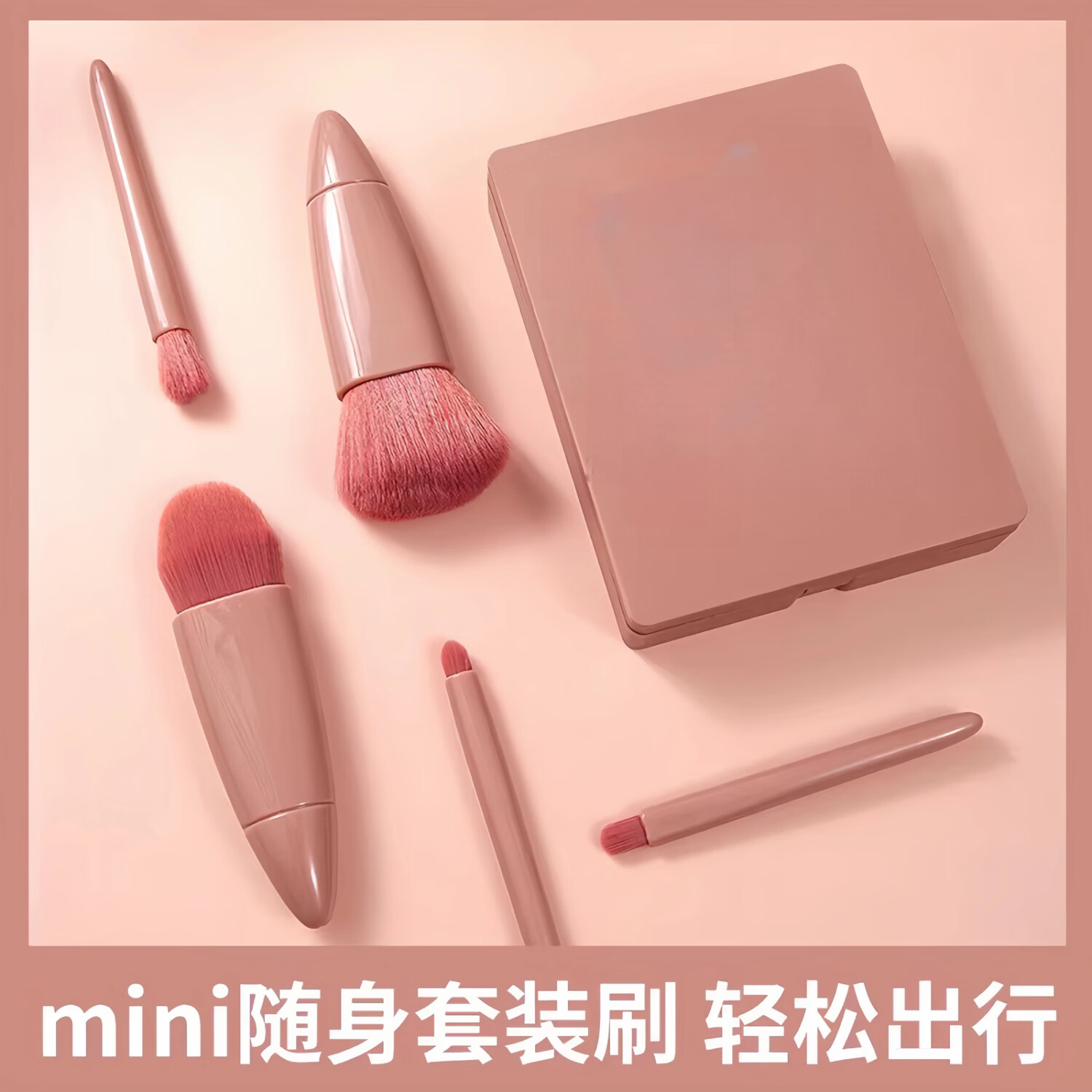 Dikalu化妆刷一套5支盒装带镜套刷粉底刷唇刷眼影刷散粉刷美妆收纳圣诞