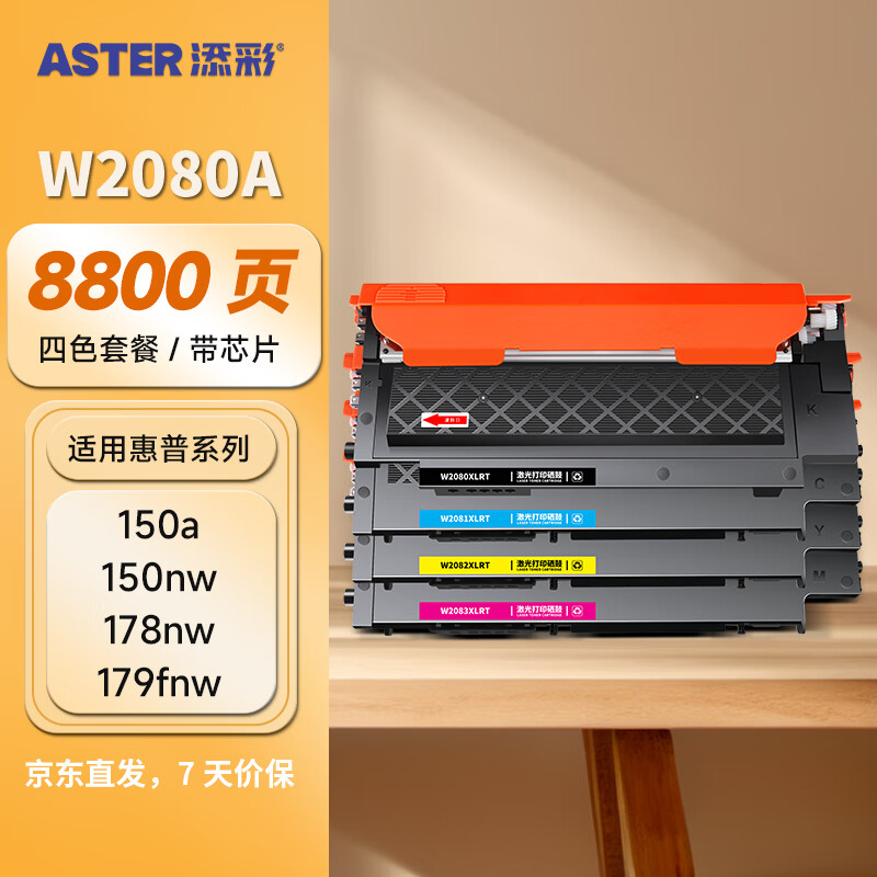 添彩118A硒鼓 适用惠普mfp 178nw 179fnw 150a 150nw 打印机墨盒 178nwg碳粉盒w2080a带芯片易加粉大容量四色套装