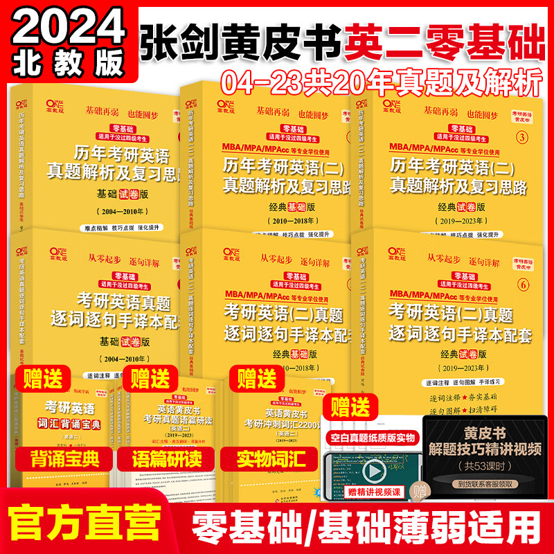 张剑黄皮书2024考研英语二 历年真题解析及复习思路北教版零基础六件套(2004-2023)可搭闪过考研真相红宝书田静句句真研肖秀荣