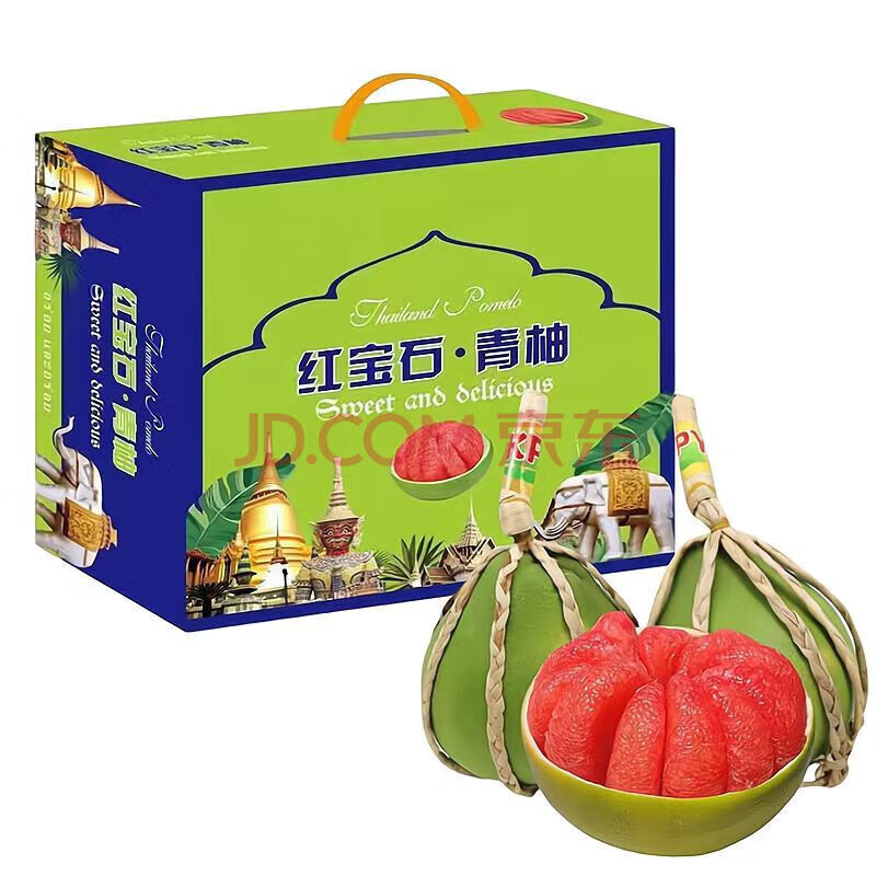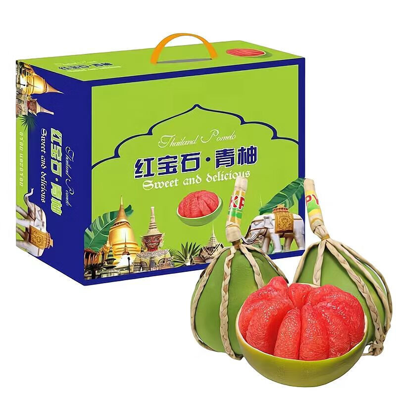 京果金榜【JD&顺丰】泰国红宝石柚子青皮红肉孕妇水果礼盒装 甄选4个【礼盒装】