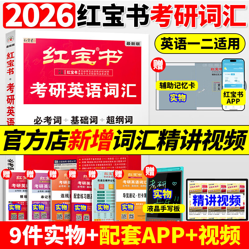 【官方直营】红宝书2026版考研英语词汇线装珍藏版考研英语一英语二适用25考研词汇26正版红宝石单词书红皮书田静句句真研语法2025 2026红宝书考研英语词汇【送液晶手写板】