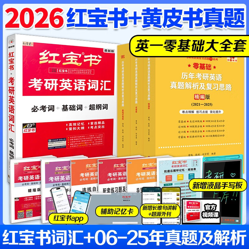 官方【赠视频】红宝书考研英语2026+黄皮书英语一英语二真题 2026版考研英语红宝书考研英语词汇 英语一英语二历年真题 【现货】2026红宝书+黄皮书真题【英一零基础】