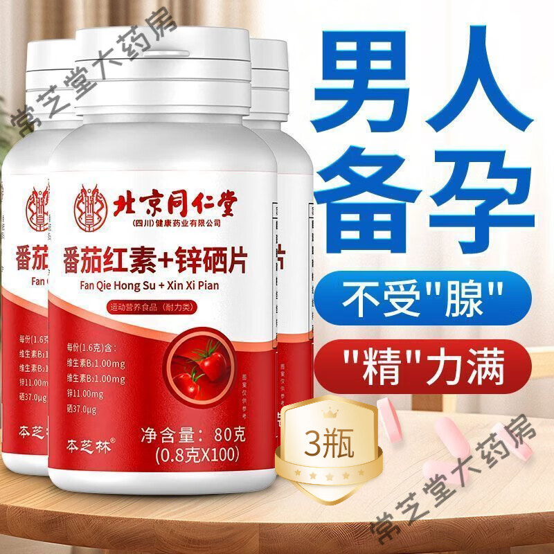 同仁堂(TRT)茁阳宝 锌硒片番茄红素成人男性补L锌补硒备孕特浓超硬精力 3瓶L300片[精子活性+周期调养]
