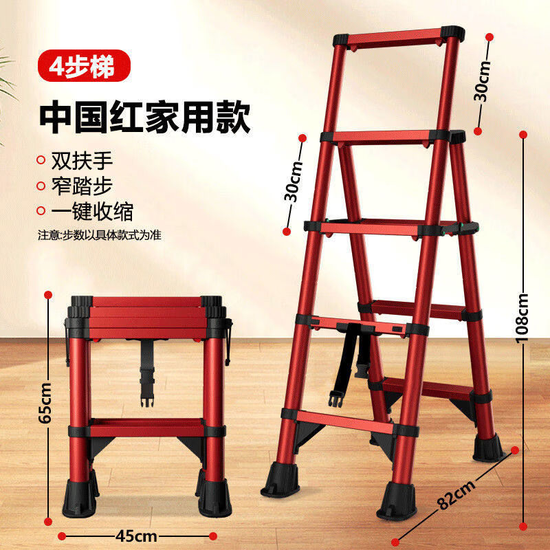 佳戈宝折叠伸缩梯室内人字梯家庭梯小型楼梯 +防晃+防夹手红款4步 伸缩梯