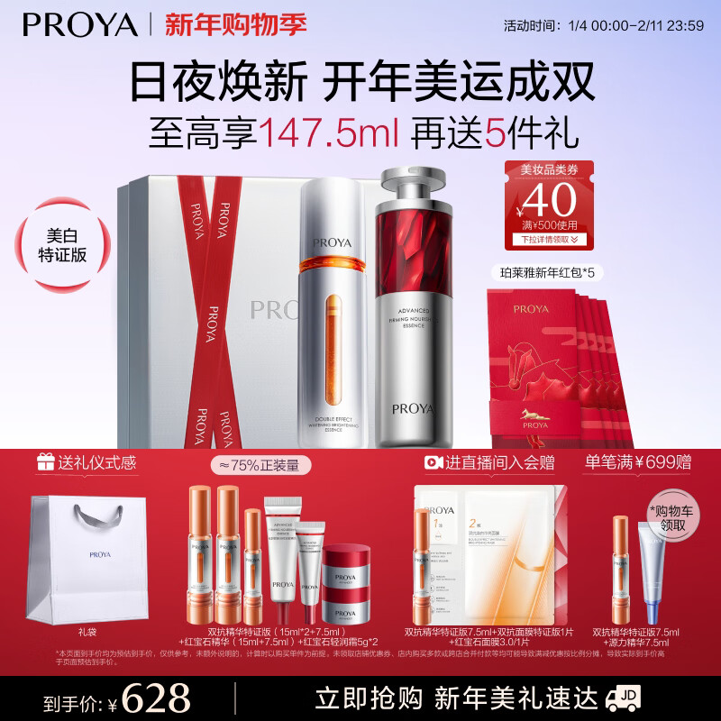 珀莱雅(PROYA)早c晚a精华液套装礼盒80ml 双抗红宝石抗皱美白护肤品 新年礼物