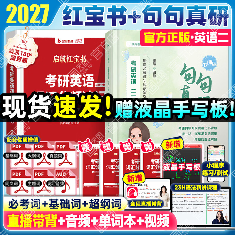 【红宝书旗舰店】红宝书2027考研英语词汇高频词+中频词+超纲词启航红宝书附必考词基础超纲词练习题册可搭句句真研考研词汇闪过价保 【官方速发】2027田静句句真研(英语一)