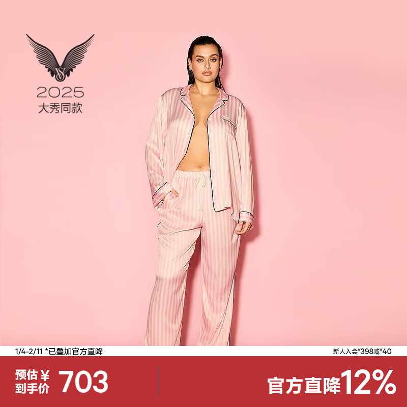 维多利亚的秘密 2025维密大秀系列 缎面长袖长裤马年礼物睡衣套装送礼送女友 5W3S粉色条纹 11254141 S