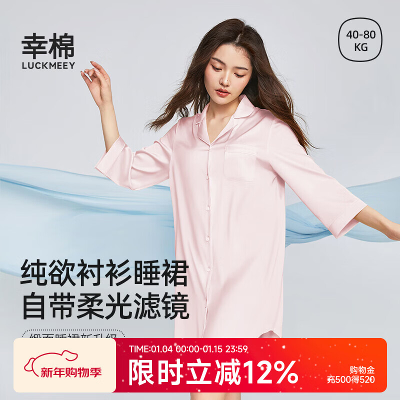 幸棉【断码特惠】睡衣女款缎面小翻领家居服丝滑居家女士衬衫睡裙薄 淡粉色 M (110-130斤)