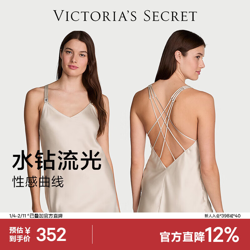 维多利亚的秘密 维密 水钻肩带性感美背缎面吊带短款睡裙女送礼送女友 34H5浅焦米色 11254312 S
