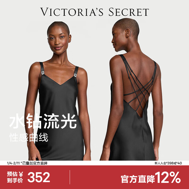 维多利亚的秘密 维密 水钻肩带性感美背缎面吊带短款睡裙女送礼送女友 5O0Q黑色 11254312 S
