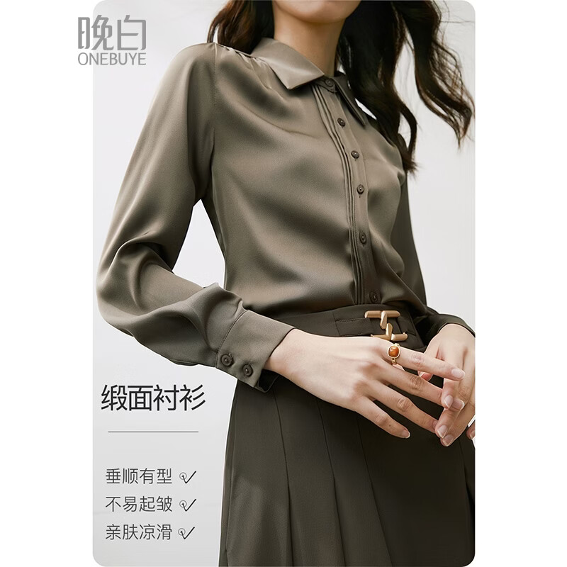 晚白【新品】职场轻正装缎面垂顺衬衫2026春季气质百搭衬衣女上衣 深棕色 M