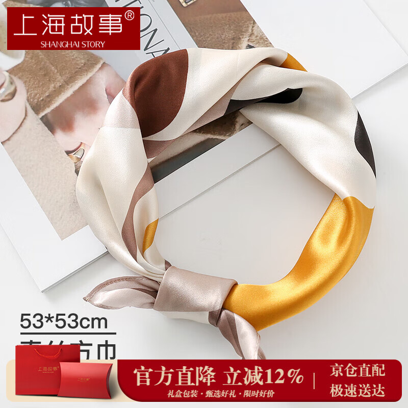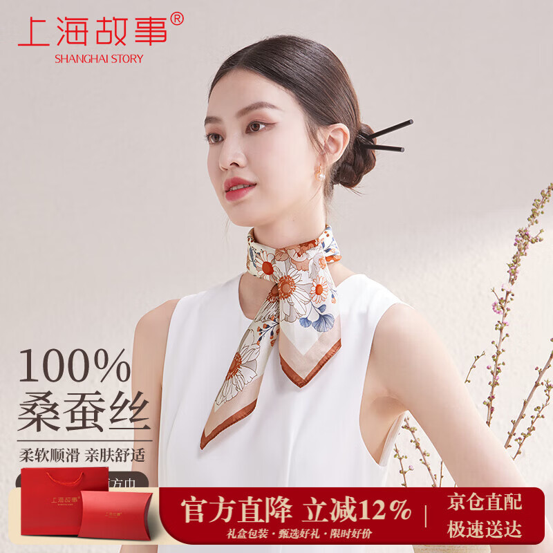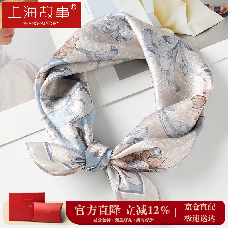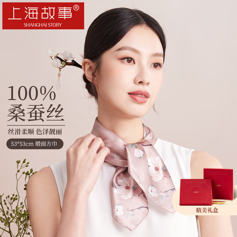 上海故事真丝丝巾女100%桑蚕丝缎面小方巾送妈妈礼物生日围巾礼盒节日