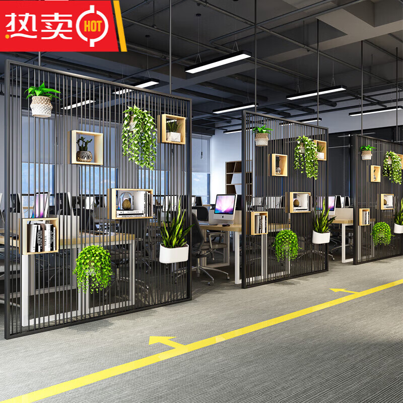 MEF铁艺简约屏风隔断办公室客厅现代玄关装饰工业风绿植花架缕空定制 长120高210