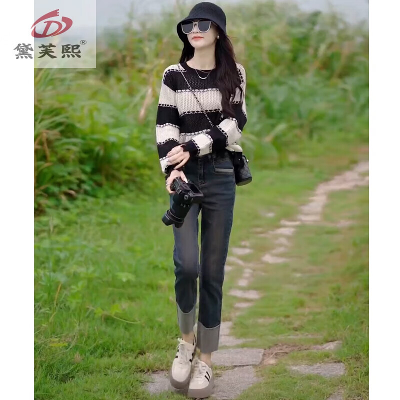 黛芙熙慵懒风时尚条纹缕空针织衫女春季2025新款感撞色洋气流苏毛衣 单-黑白针织衫 S 建议85-99斤