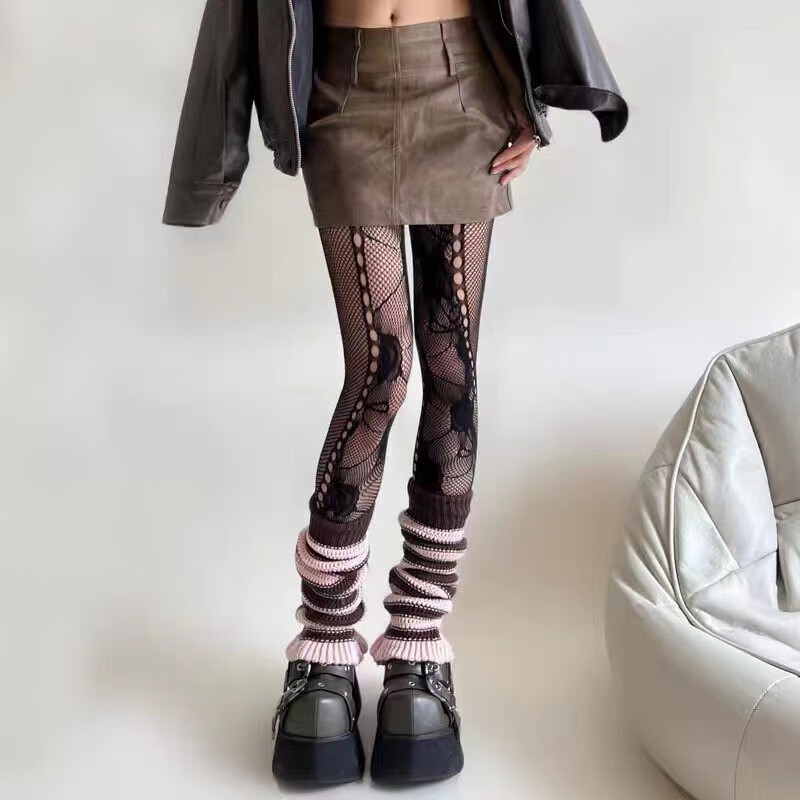 春夏季新款y2k辣妹缕空复古连裤丝袜亚文化不规则破洞蕾丝渔网袜 黑色