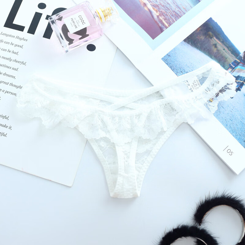 丽潞蕾丝女士内裤缕空性感内裤女式诱惑低腰交叉丁字裤T裤8 白色 均码