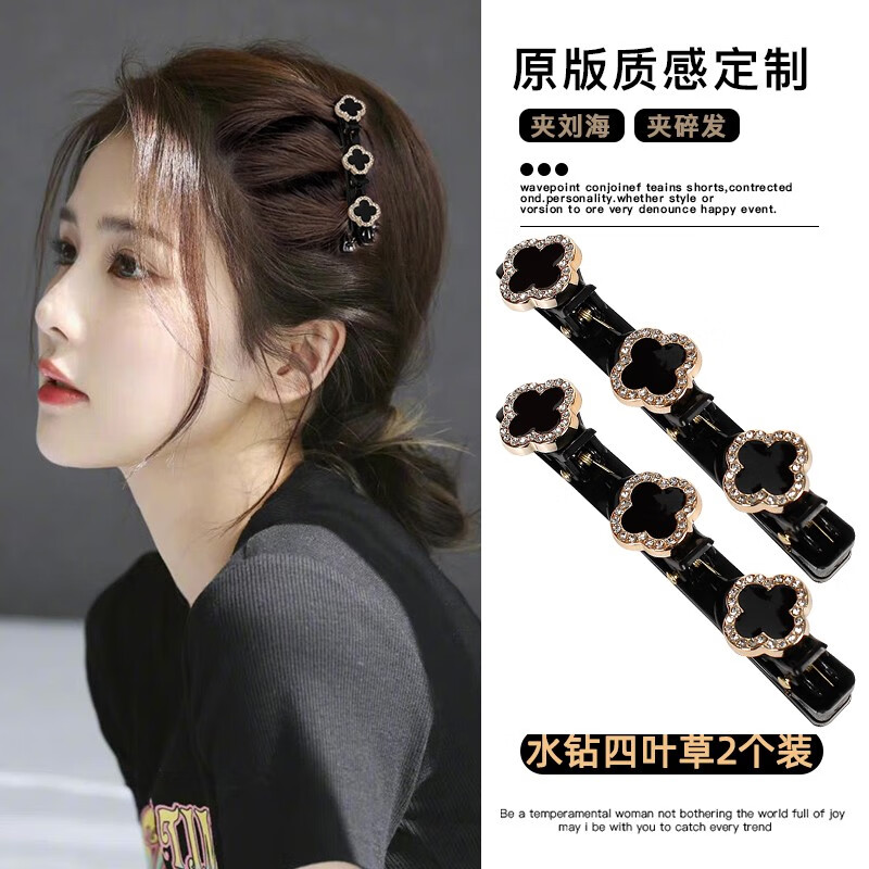 卓可可网红编发发夹女秋冬刘海碎发整理神器卡子前额小夹子头饰侧边发卡 水钻四叶草【2件套】