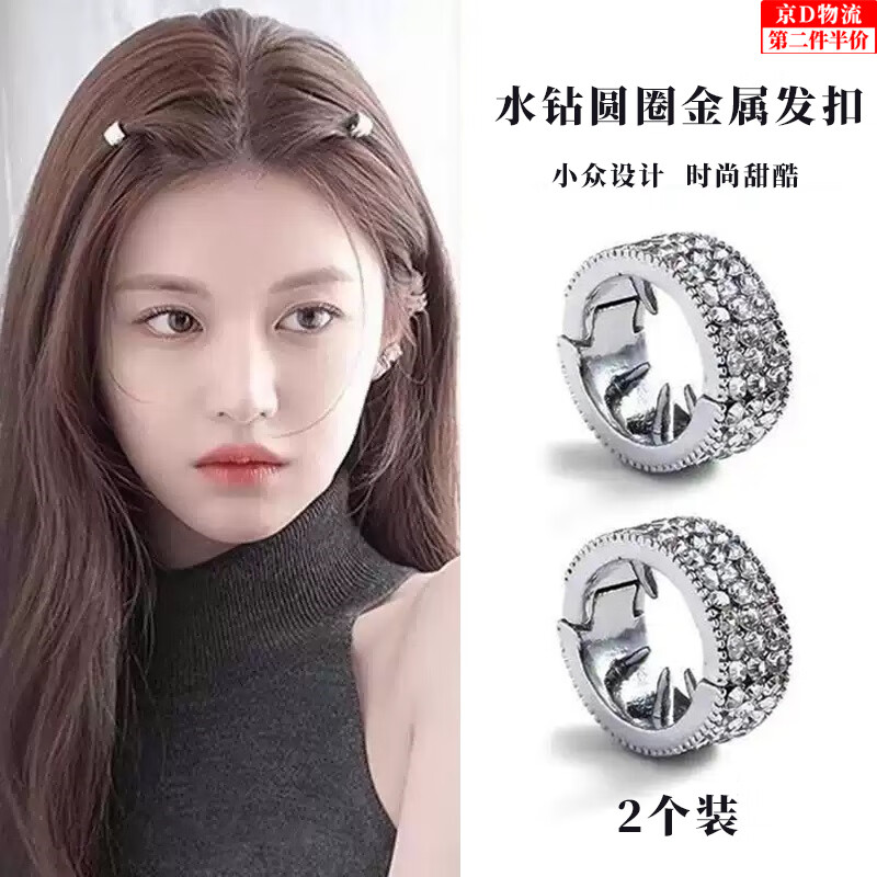 沛靓虞书欣尖叫之夜同款闪钻银色圆形编发发扣个性嘻哈甜酷脏辫发夹 水钻发扣【银色两个装】