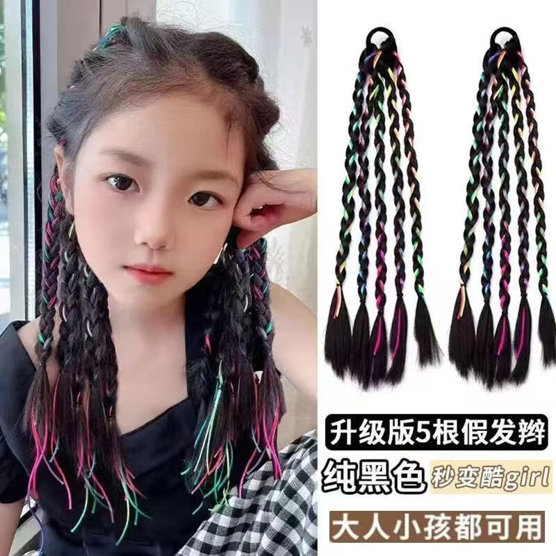 XPEL新年红色蝴蝶结假发辫女马尾挑染编发长辫双马尾脏辫辣妹拳击辫子 五根彩绳拳击辫【1对】
