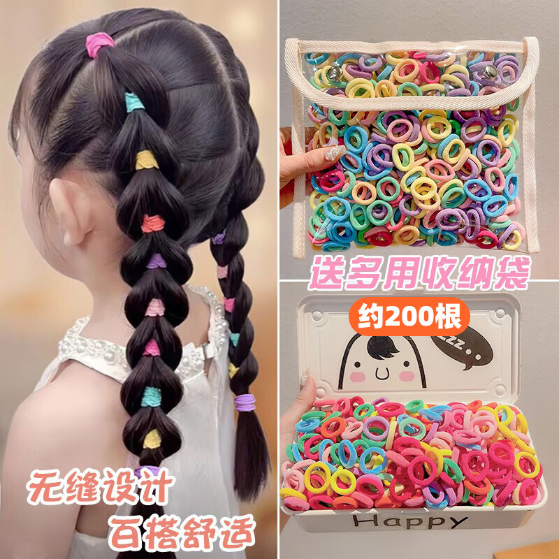 儿童发圈女高弹力不伤发头绳小女孩编发橡皮筋发饰扎头发耐用皮套 春天色200根