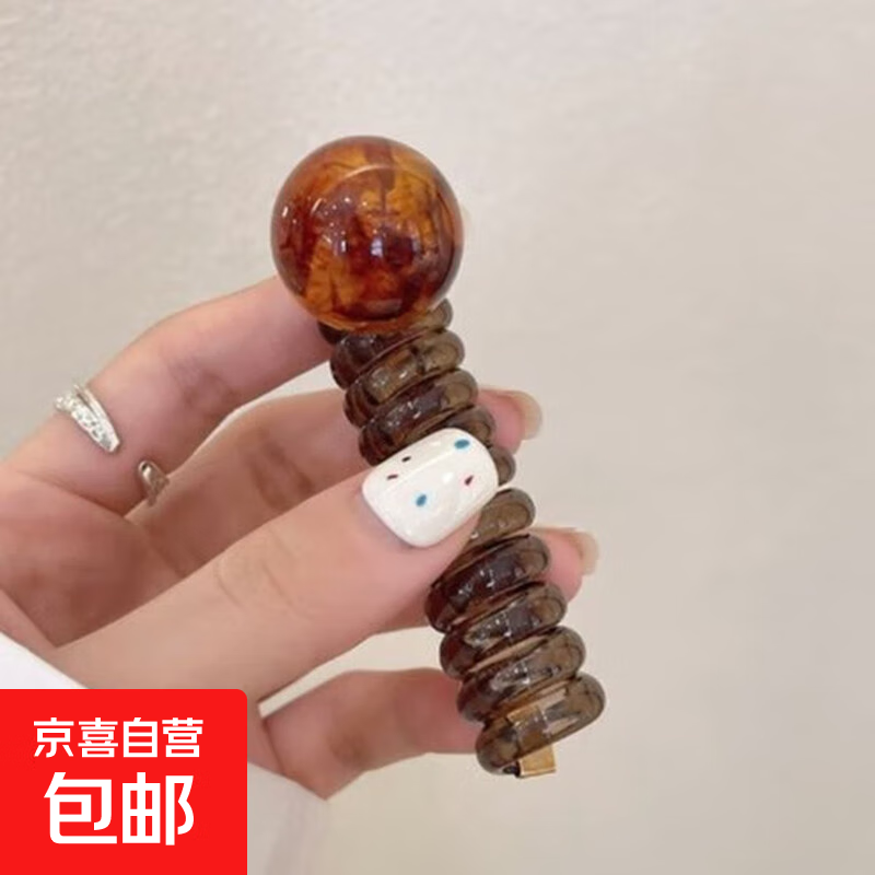 复古简约泡泡辫头绳女2024新款高级感发饰气质马尾编发电话线发圈 电话线发圈-咖线款-焦糖珠-1件