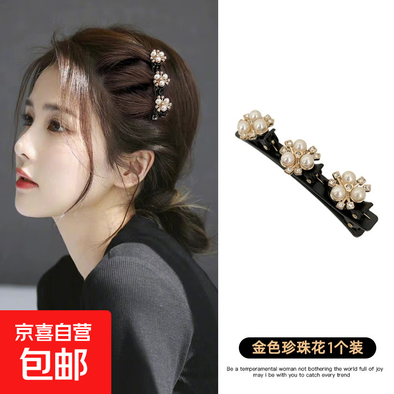 2025年网红新款珍珠水钻懒人编发神器洋气碎发发夹刘海夹侧边发卡 金色珍珠花一个装