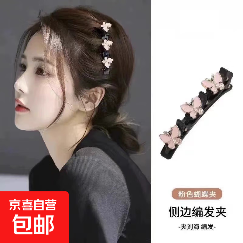 2025年网红新款珍珠水钻懒人编发神器洋气碎发发夹刘海夹侧边发卡 粉蝴蝶一个装