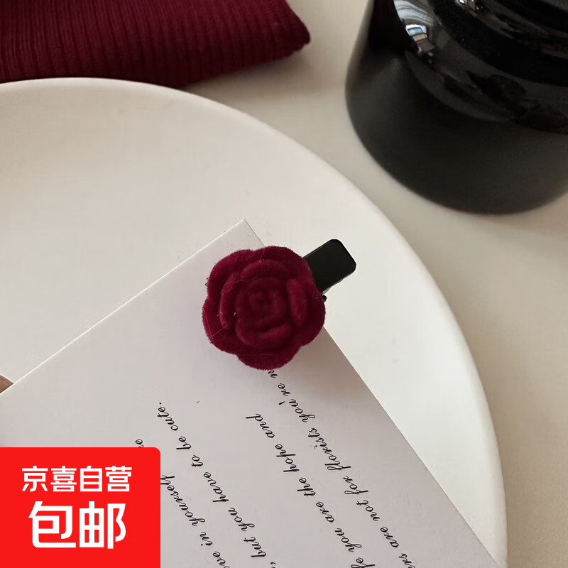 秋冬新款酒红植绒山茶花爱心发夹边夹精致可爱编发小夹子侧边发卡 植绒玫瑰 5个