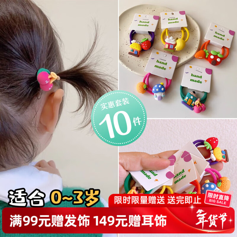 奇美拉(CHIMERA)10件甜美儿童发圈头绳卡通皮筋编发头饰发饰生日礼物女孩新年礼物