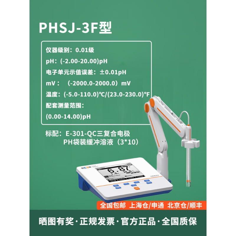 雷磁PHSJ-3F型实验室pH计/酸度计/±0.01pH/自动温补/USB/ID设置 PHSJ-3F型pH计/酸度计(套装)