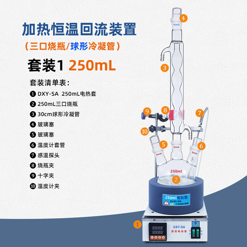 瑞锌玻璃蒸馏装置加热恒温回流装置500/1000ml实验室冷凝设备纯露精油 球形套装一:250ML回流装置