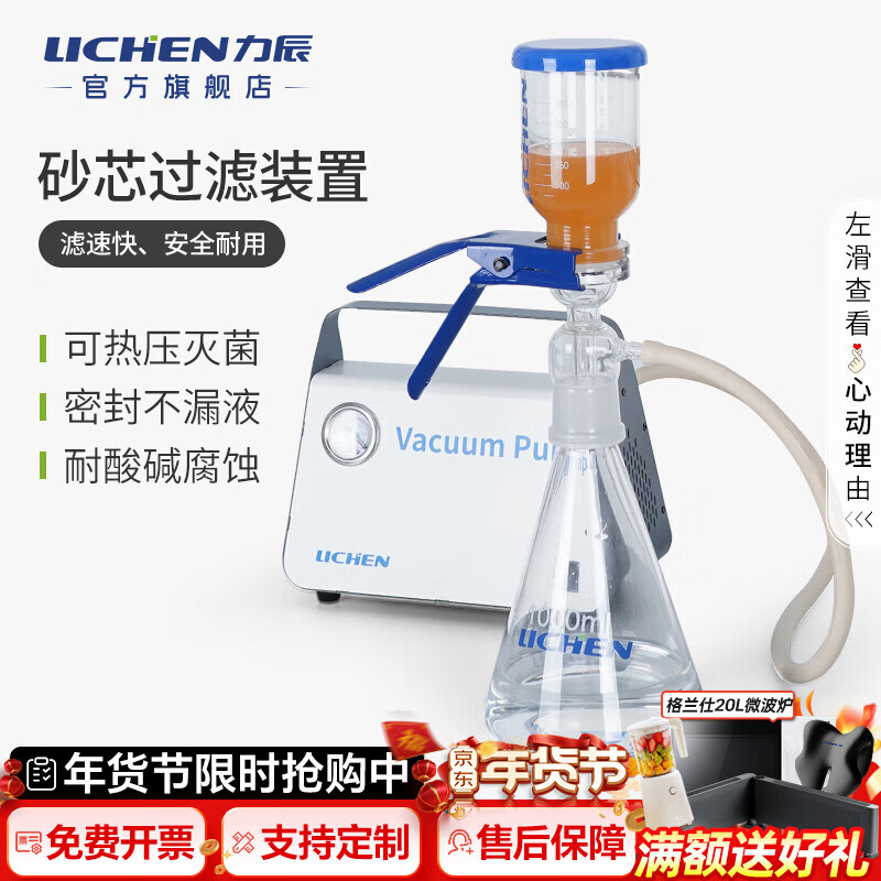 力辰(LICHEN)砂芯过滤装置多联过滤器实验室微孔滤膜真空不锈钢过滤器抽滤瓶 2000ml】砂芯过滤装置LC-FAG-2000B