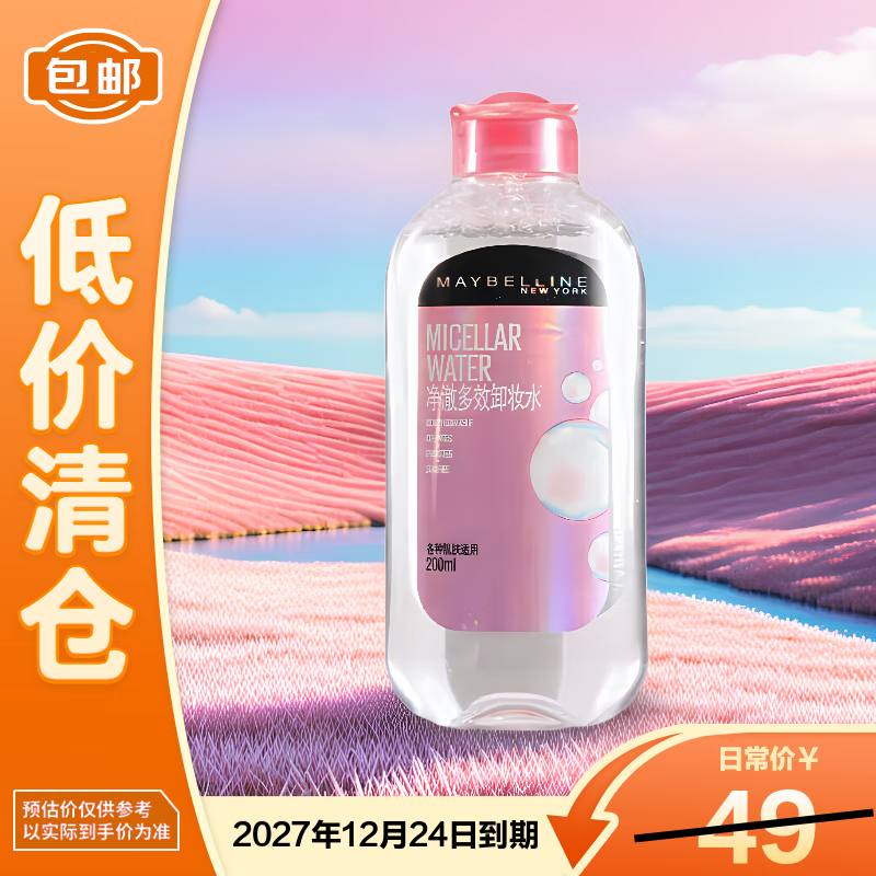 美宝莲净澈多效卸妆水200ml深层清洁敏感肌温和卸妆【临期清仓】