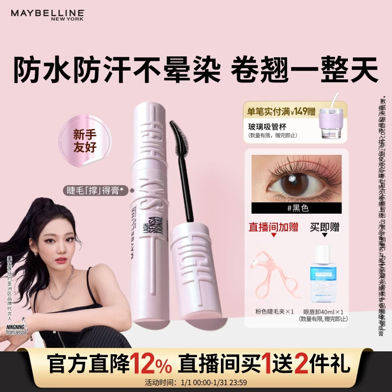 美宝莲【NINGNING同款】冲天翘睫毛撑得膏睫毛膏纤长卷翘防水新年礼物女