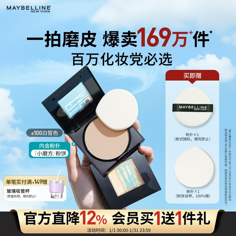 美宝莲FITME小磨方粉饼哑光散粉定妆补妆控油光100白皙肤色新年礼物女