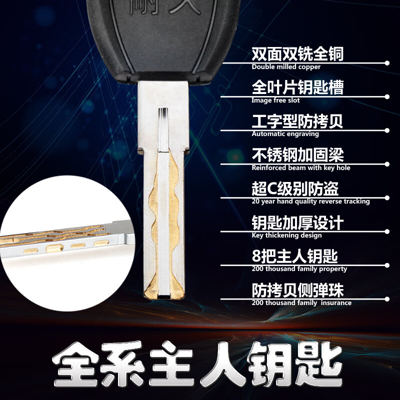 宙语适用耐久超C级防盗门锁芯 54型页片锁芯通用型防技开 32.5+32.5=65超C级