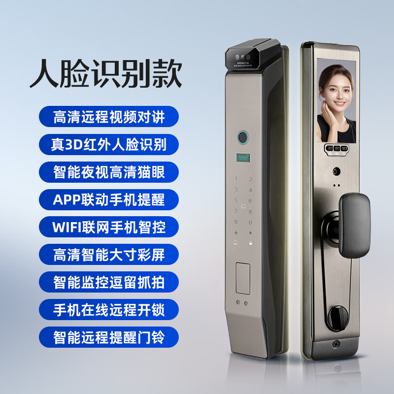 耐久全自动人脸识别智能锁远程对讲挡盗门指纹锁涂鸦密码锁猫眼 5S基础