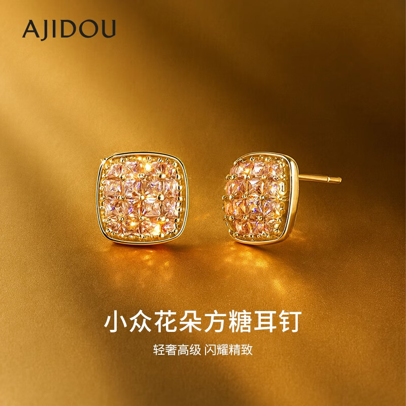 AJIDOU阿吉豆耳饰女款时尚香槟色方糖耳钉小众花朵闪耀高级感耳坠新年