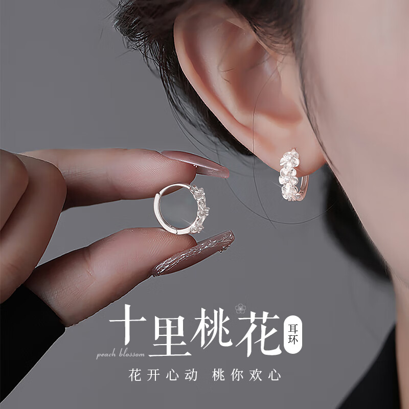 GLTEN桃花银耳钉女耳坠环轻奢新款耳饰高级生日情人节礼物新年女友老婆