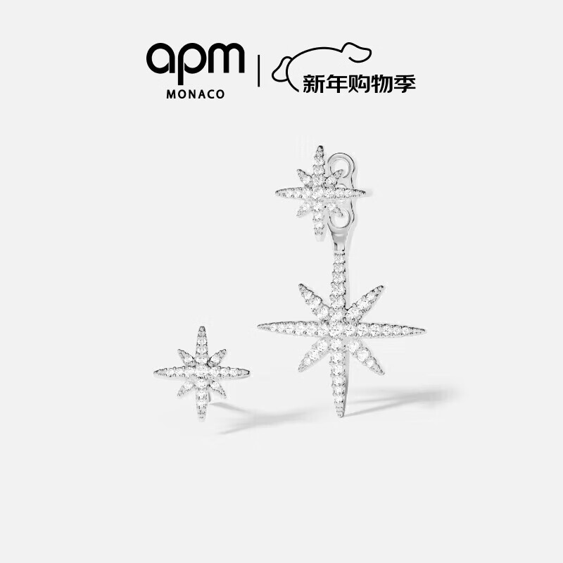 APM Monaco六芒星不对称银耳钉耳环耳坠耳饰时尚饰品新年礼物