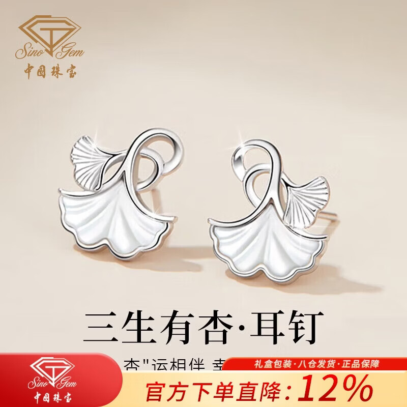中国珠宝 足银三生有杏耳钉女2025新款轻奢耳坠耳饰新年日生日礼物送女友