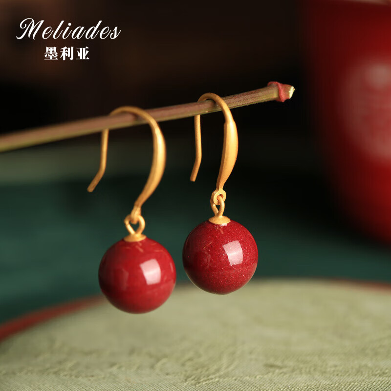 墨利亚(Meliades)S925银针红玉髓耳坠民族风耳钉中国红耳坠简约大气古风 朱砂耳坠