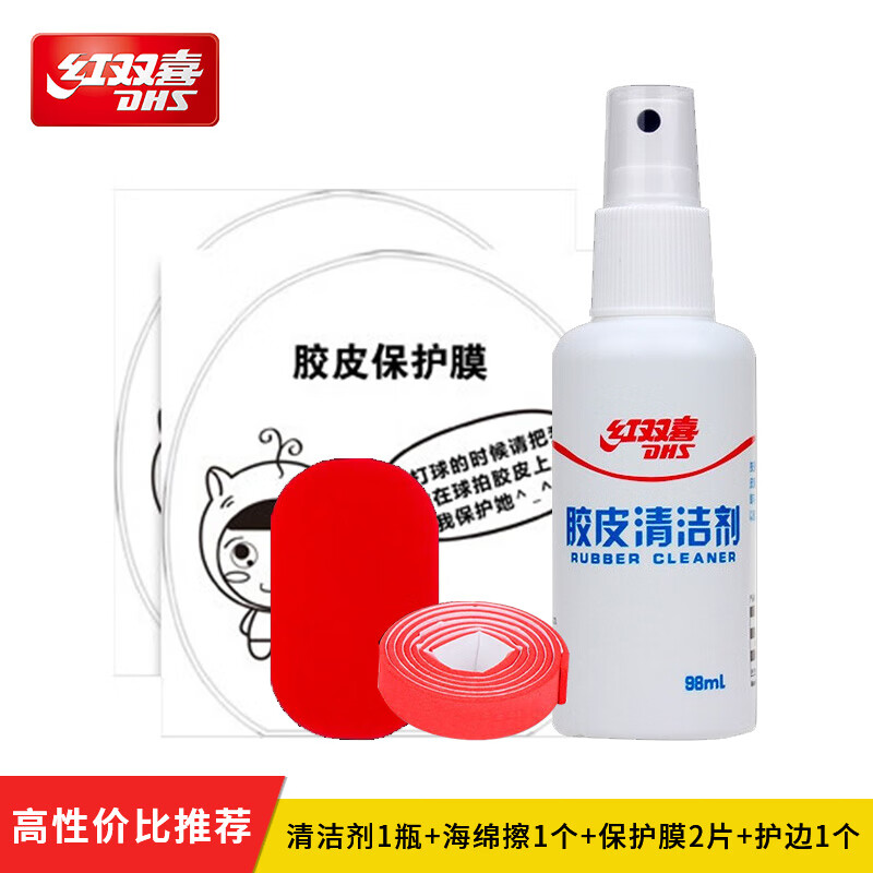 红双喜乒乓球拍胶皮清洁剂海绵擦增粘胶皮清洗剂底板套胶护理套装 红双喜保护膜+清洁剂+海绵擦