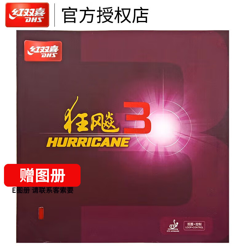 DHS红双喜 狂飙3套胶 狂飚3粘性乒乓球拍胶皮 红色40度2.2