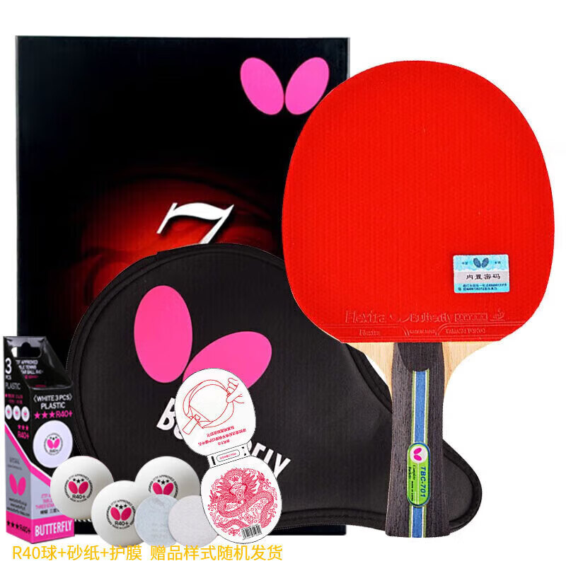 蝴蝶(BUTTERFLY)七星乒乓球拍横拍 弧圈快攻双面反胶皮碳素底板单拍701 附拍套