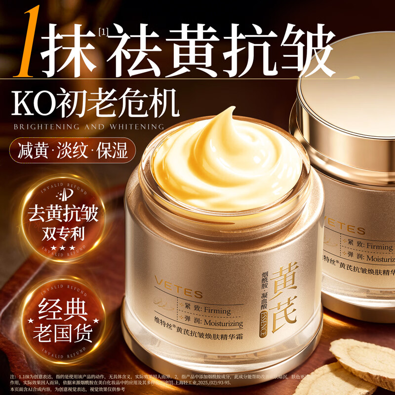 维特丝黄芪霜老国货保湿面霜男女去黄提亮抗皱紧致淡斑抗衰老贵妇膏护肤