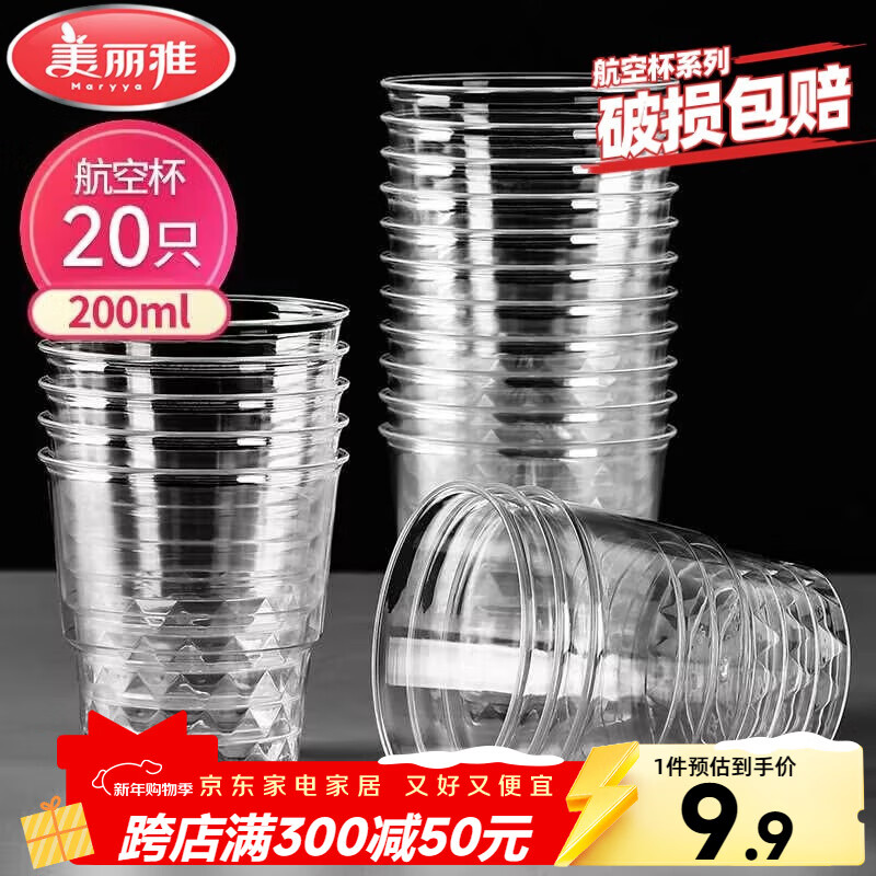 美丽雅一次性杯子航空杯 200ml*20只太空杯 加厚饮料杯塑料水杯茶杯