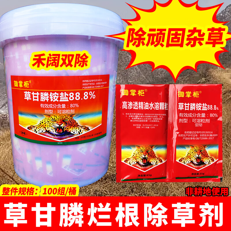 锄掌柜88.8%草甘膦铵盐草甘磷正品大桶袋装颗粒剂 草甘膦除草烂根除草剂 88.8%草甘膦100g袋装*1组